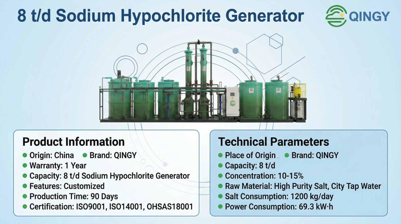 Qingyang Technology is a high-tech manufacturer specializing in sodium hypochlorite generators, electrolytic disinfection systems, and water electrolysis hydrogen production technologies for industrial and municipal applications.