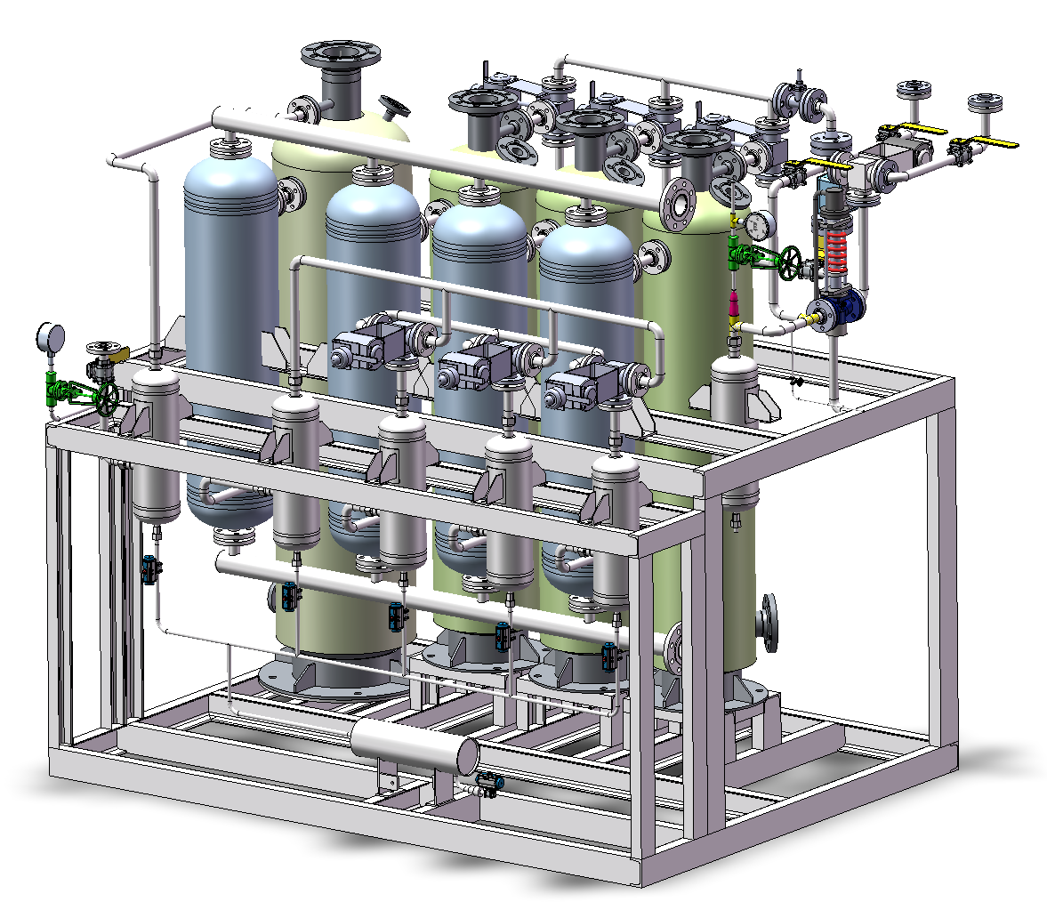 – **High-Pressure Hydrogen Production**: Our systems can produce hydrogen at pressures up to 30 bar, ideal for direct compression and storage in high-pressure tanks for short-to-medium term needs