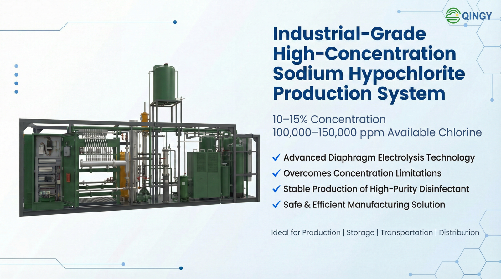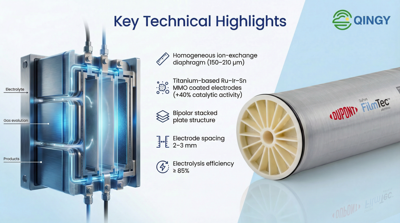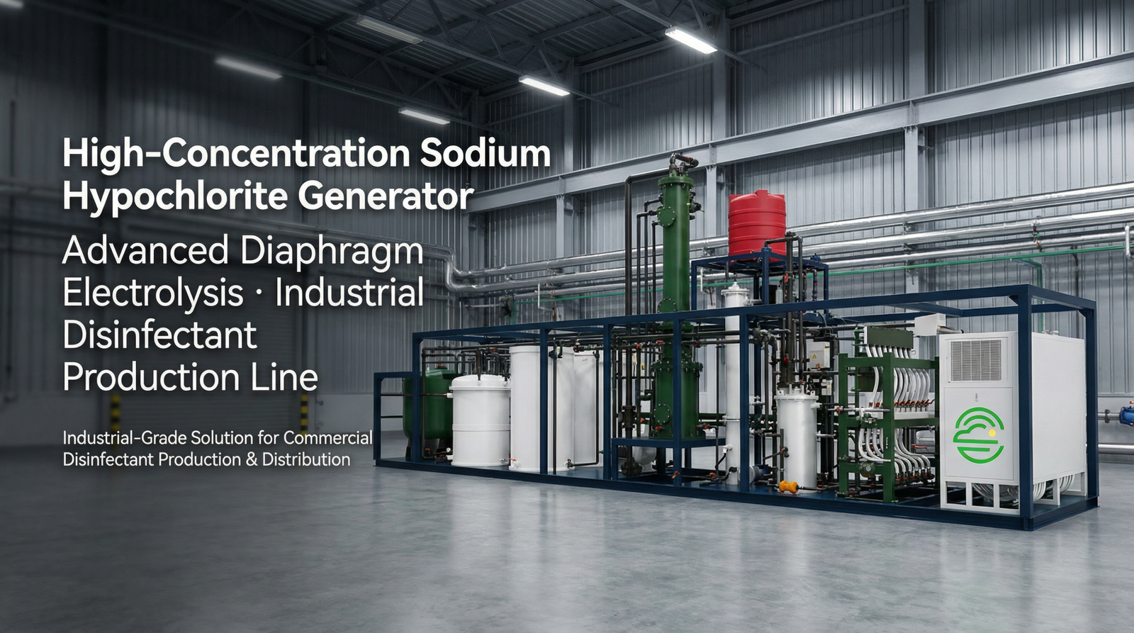Membrane-based generator for high-strength sodium hypochlorite. Safe, reliable, and consistent solution for water treatment, disinfection, and industrial chemical applications.